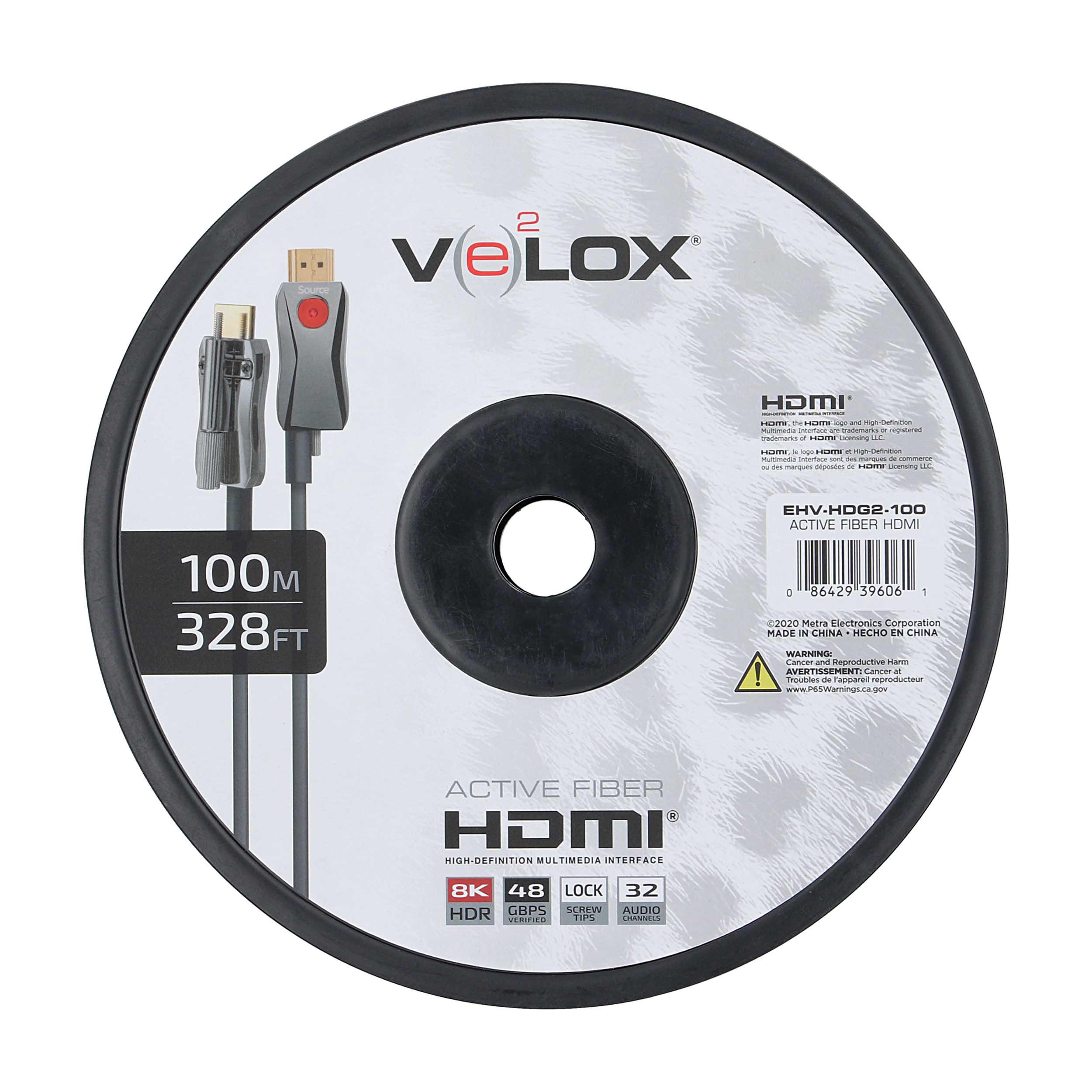 Velox’s ultra-premium construction and high-tech engineering results in clean, reliable performance for the demands of higher bandwidth 8K/10K content in long runs. These ultimate high speed hybrid technology fiber HDMI® cables with Ethernet are engineered with bandwidth capability up to 48Gbps for 8K content.