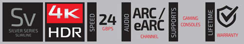 The Silver Series is equipped with a unique low profile design that will provide you excellent performance and a versatile form factor that will increase the simplicity of your installation. The versatility of this series makes it a great choice in your equipment cabinet and on a full motion TV mount. This series also includes a locking HDMI® connector to prevent accidental cable slippage and color-coded inserts for improved organization. The Silver series of HDMI®cables fully support all HDMI® 2.0 devices, HDR, Dolby Visions, Dolby Atmos and HDCP2.3