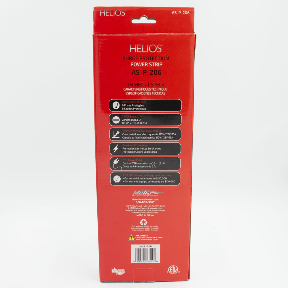 6-OUTLET 1080J SURGE PROTECTOR POWER STRIP WITH 2 USB 2.1A, STRAIGHT PLUG, 6FT (BLACK)