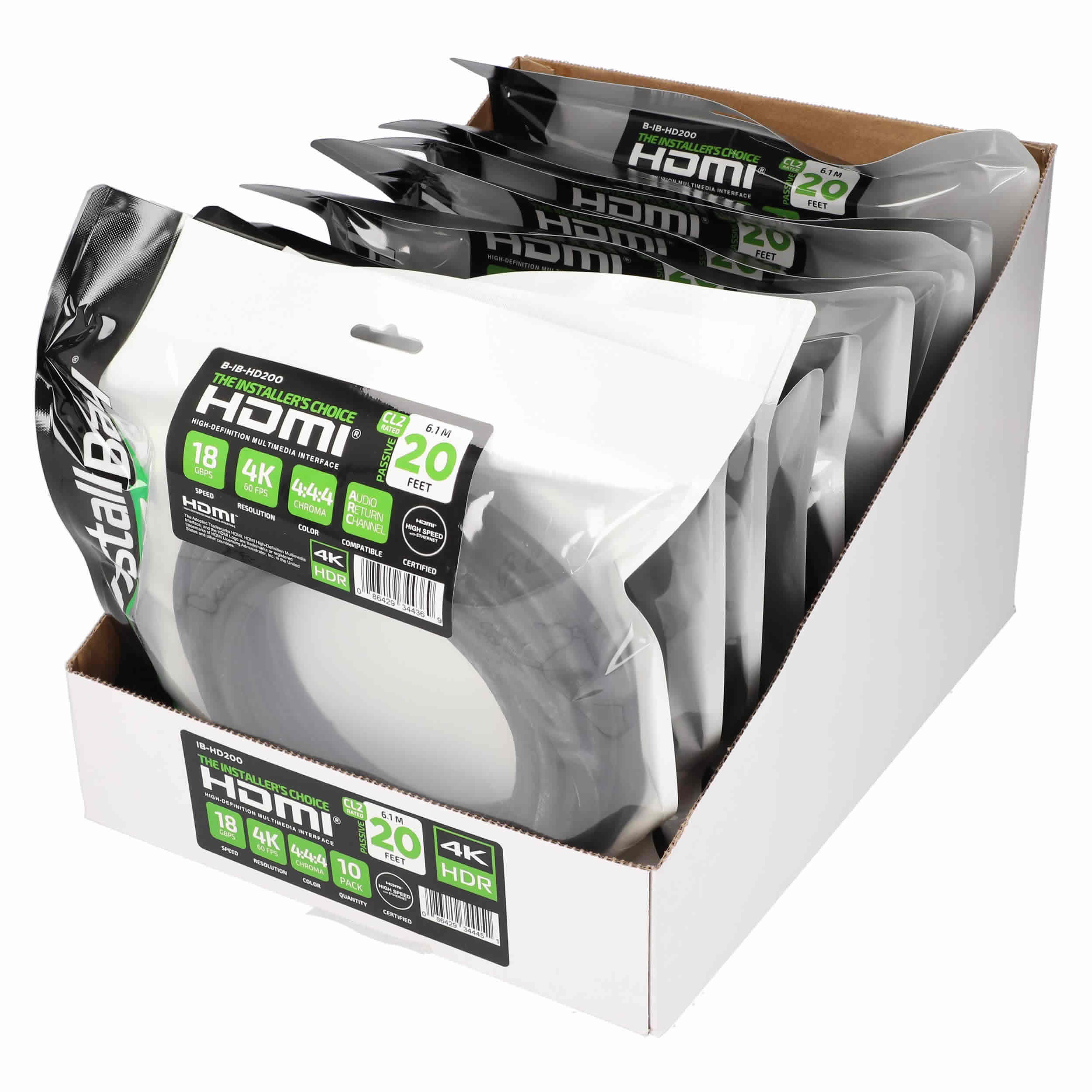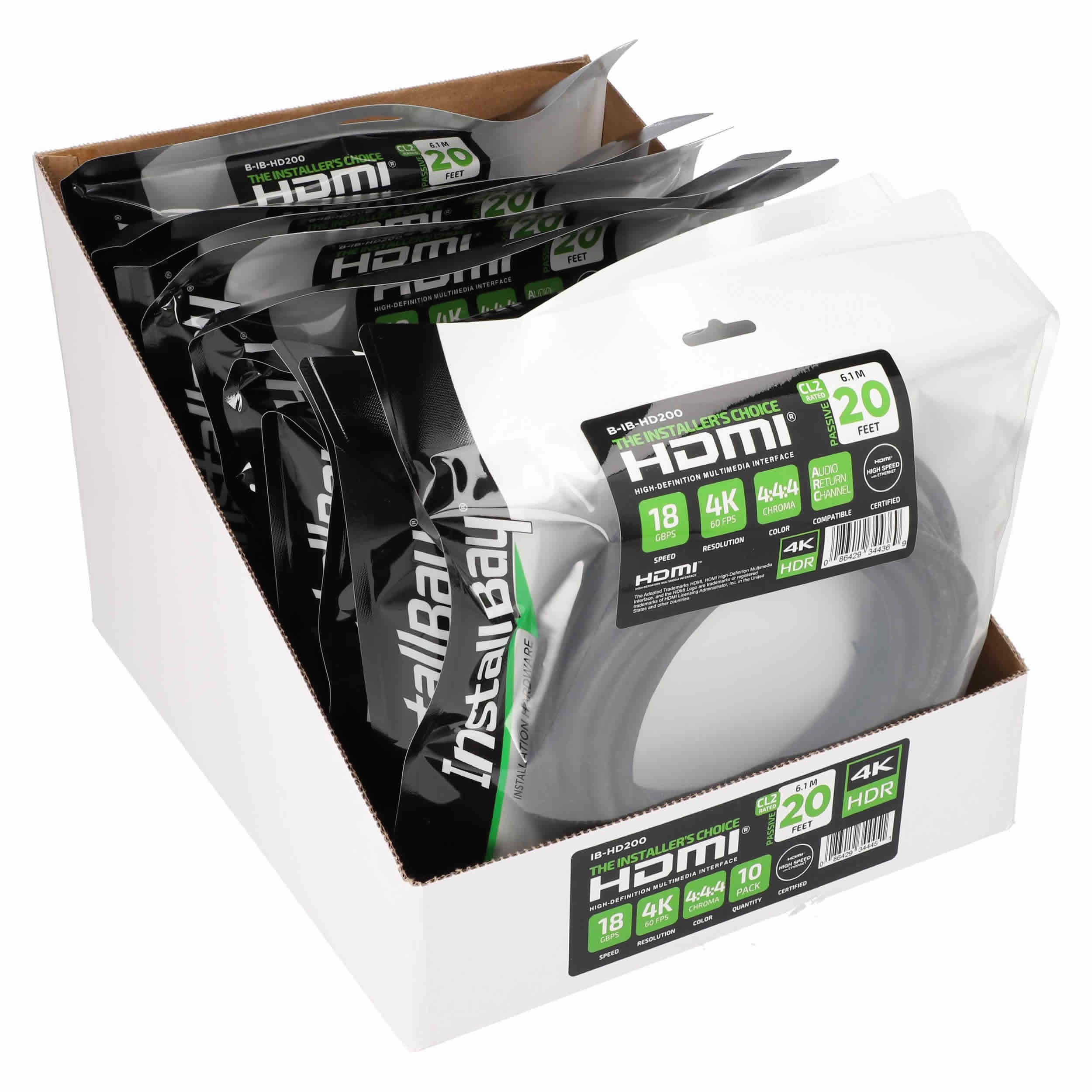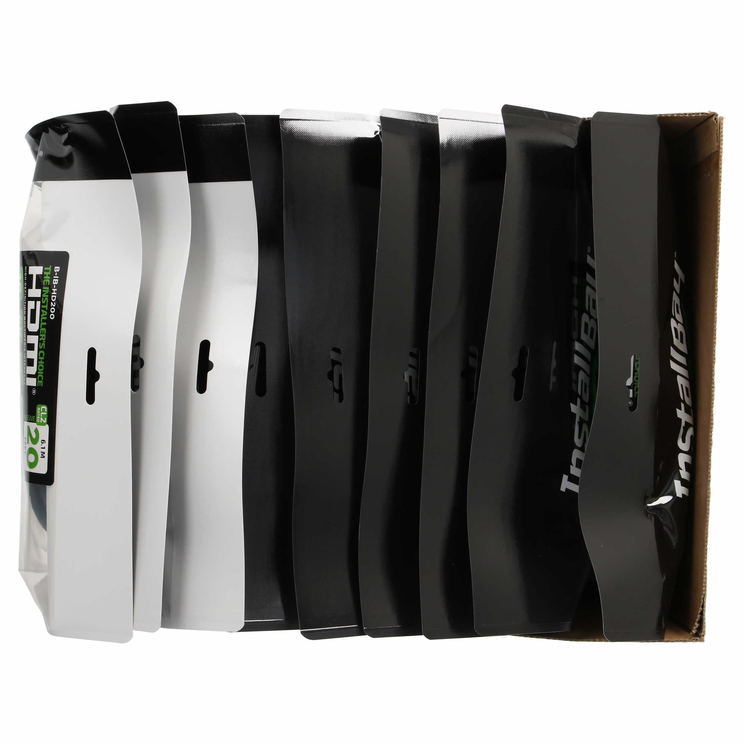The Install Bay line of HDMI® cables support the latest in video technologies ideal for integrators, home builders, distributors and retailers. Each length is sold by the case pack and has a convenient tear away box top feature to easily stock your shelves with clearly marked and identifiable cable type package markings. Each cable is individually packaged with clear feature markings in resealable bags.