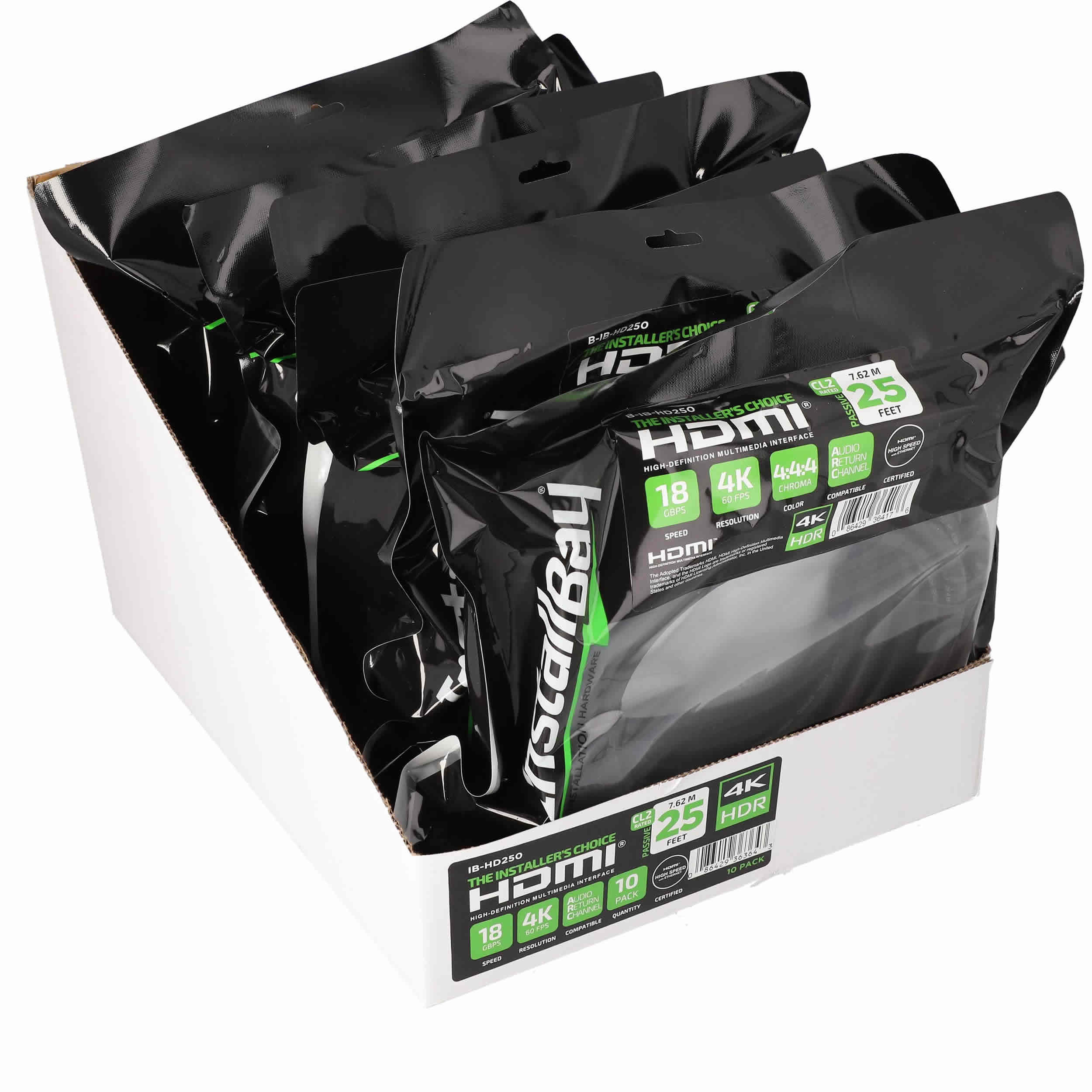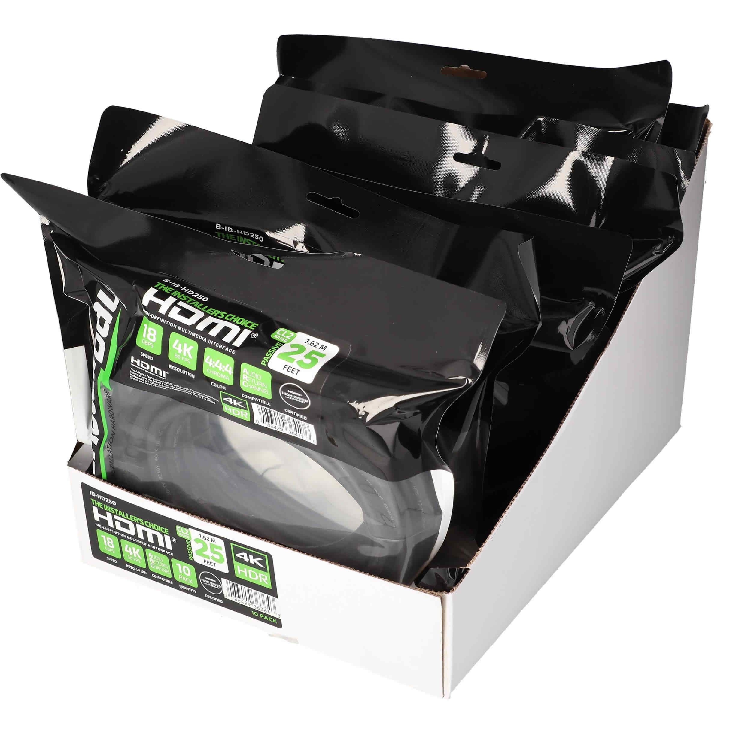 25FT HDMI CABLE 18GBPS HIGH SPEED, ARC/EARC, 10PK SHELF PACK